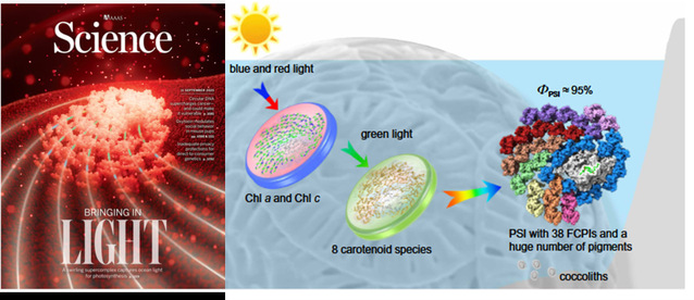 近日,国际顶尖学术期刊《Science》以封面论文形式发表了题为《Structure and function of a huge photosystem I-fucoxanthin chlorophyll supercomplex from a coccolithophore》的重要研究成果,该项工作由中国科学院植物研究所王文达研究团队与田利金研究团队等合作,我校化学化工学院范建华教授作为合作作者。