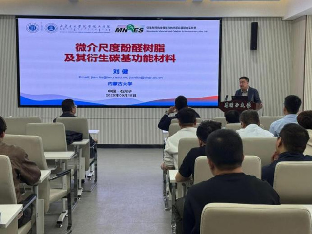 近日,石河子大学“化工大讲堂”2025年第十七讲在化工创新楼205会议室顺利举办。英国皇家化学会会士,内蒙古大学化学化工学院二级教授,博士生导师,院长,国家海外高层次人才,教育部重大人才计划特聘教授入选者刘健应邀为石河子大学化学化工学院师生带来了题为“微介尺度酚醛树脂及其衍生碳基功能材料”的学术报告。本次学术报告活动由石河子大学化学化工学院、新疆兵团化工绿色过程重点实验室主办,化学化工学院贾鑫教授主持,相关方向及感兴趣的硕博士研究生参加。在讲座开始前,贾鑫教授对刘健教授的来访表示热烈的欢迎,并向现场师生介绍了刘健教授在催化纳米功能材料的设计合成、纳米反应器构筑以及催化相关领域的基础研究等方面的卓越成就。