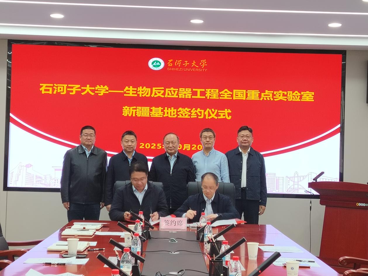 在与会人员的共同见证下,石河子大学化学化工学院院长刘纪昌与叶邦策院长签署了共建生物反应器工程全国重点实验室新疆基地的合作协议。
