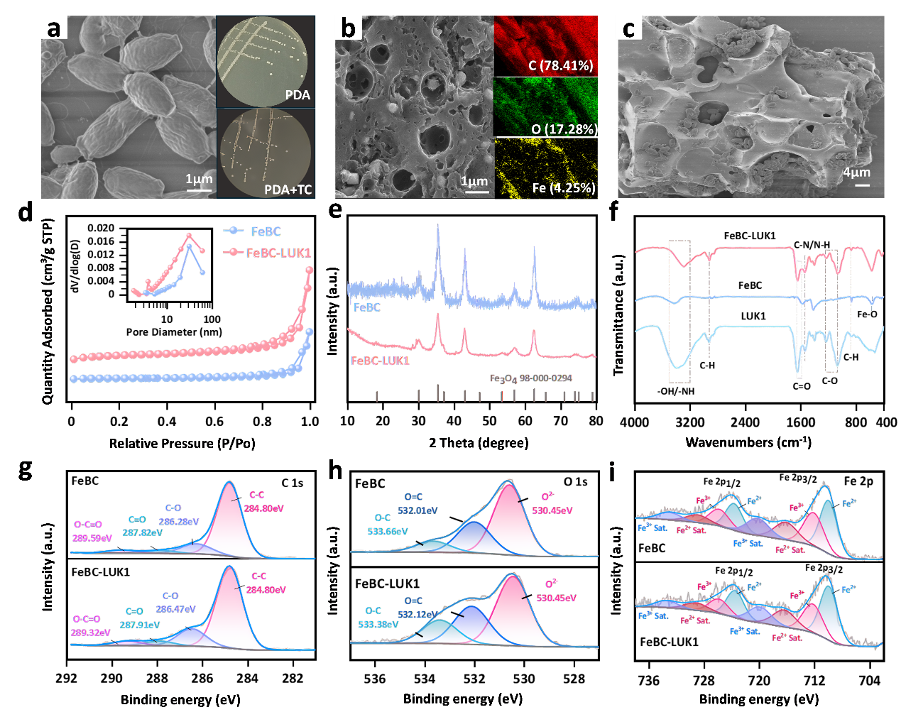 四环素作为一种广泛使用的抗生素,其环境残留带来的生态风险与耐药基因扩散问题日益严峻。针对此问题,研究团队巧妙地将可降解四环素的酵母菌(Meyerozyma guilliermondii LUK1)与富含铁元素的生物炭载体相结合,构建了兼具吸附与生物降解功能的FeBC-LUK1复合材料。该材料通过三重协同机制实现高效降解:首先,菌株在生物炭表面形成生物膜,构建了介孔网络,将比表面积从1.70提升至3.68 m²/g,极大改善了传质效率;其次,微生物分泌的胞外聚合物提供了丰富的活性位点;最关键的是,材料中稳定的Fe³⁺/Fe²⁺氧化还原循环(Fe²⁺占比57.28%-60.50%)构建了一条高效的电子传递“高速公路”,显著加速了降解反应。