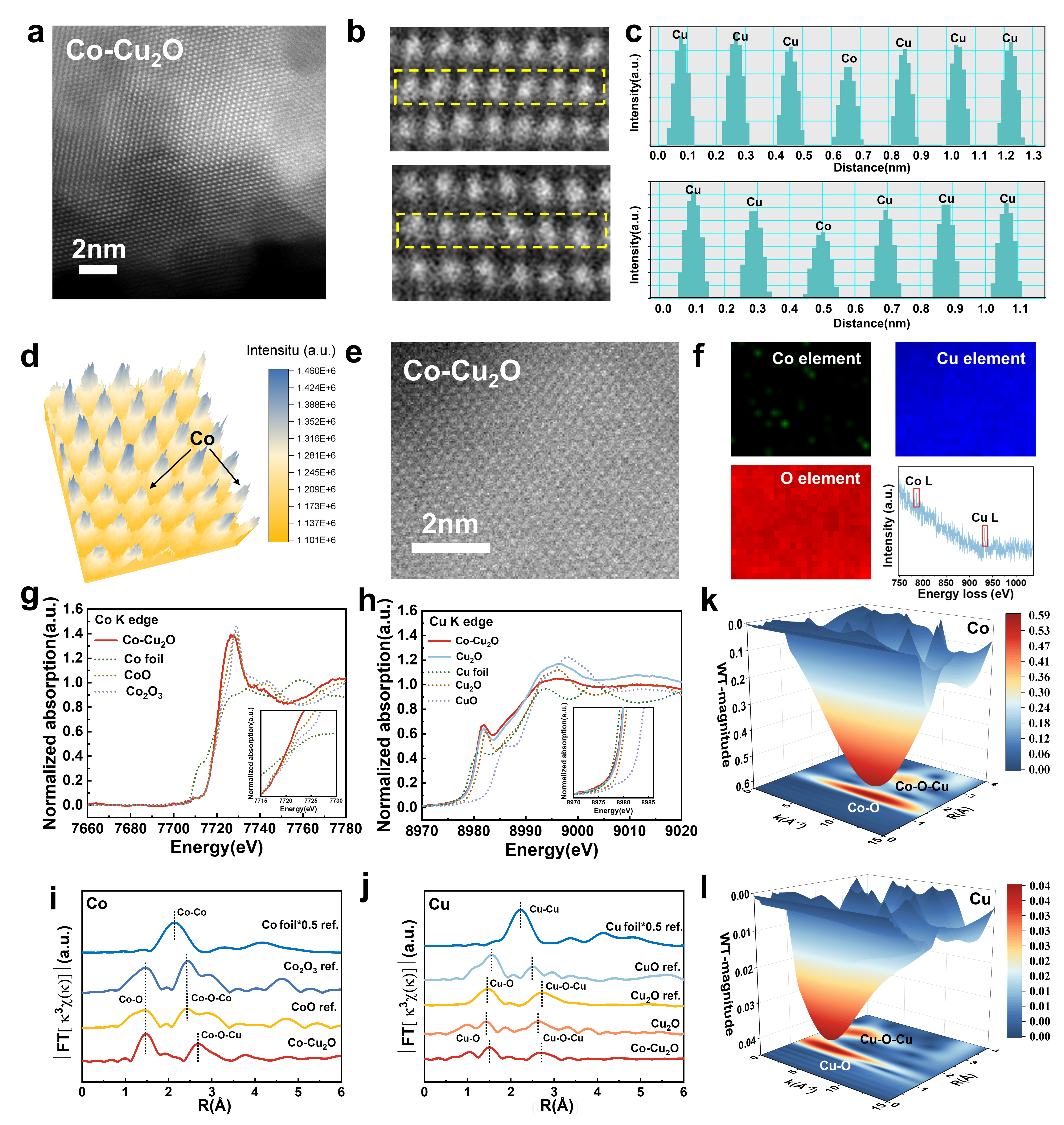 图3. Co-Cu2O催化剂的原子级结构与电子态表征